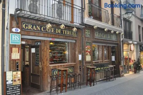 Stay in the heart of Teruel with comfortable rooms, private balconies, and convenient amenities just steps from local attractions.