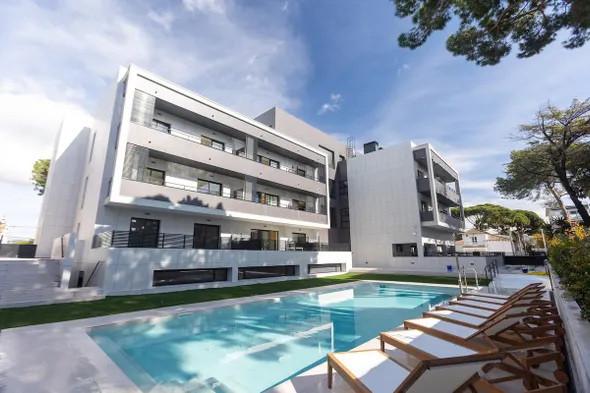 Mediterranean hotel with a seasonal outdoor pool, fitness center, and restaurant in Castelldefels.