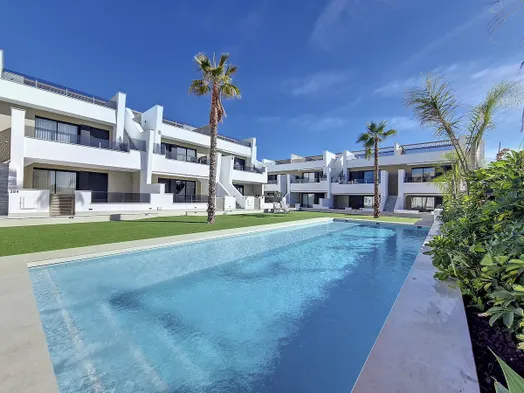 New apartment with large roof terrace and swimming pool, near the sea and beach