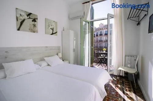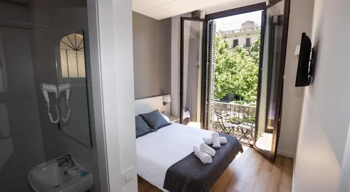 Centrally located hostel in Barcelona with air-conditioned rooms and a communal kitchen for a comfortable stay.