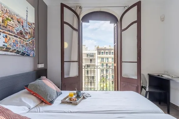 Centrally located hotel in Barcelona with a fitness center and banquet hall, perfect for business and family stays.