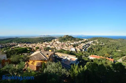 Stay near the beach in Begur with comfortable rooms, free wifi, and a terrace for relaxation.