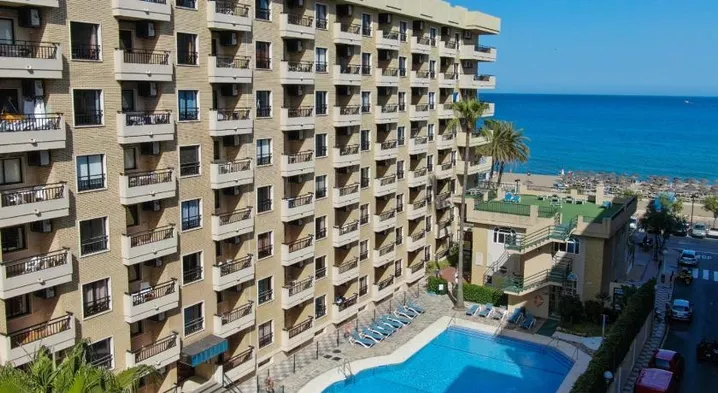 Experience stunning beach views at this Mediterranean hotel with an outdoor pool and a beachfront restaurant in Fuengirola.