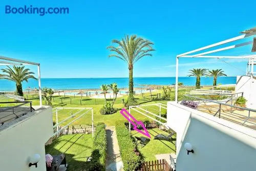 On Beach Deluxe Apartment with Pools and own Garden