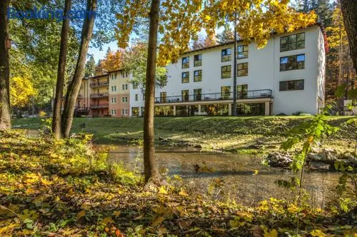 Luxury hotel with spa services, two indoor swimming pools, and a restaurant in Polanica-Zdrój, just minutes from local parks.