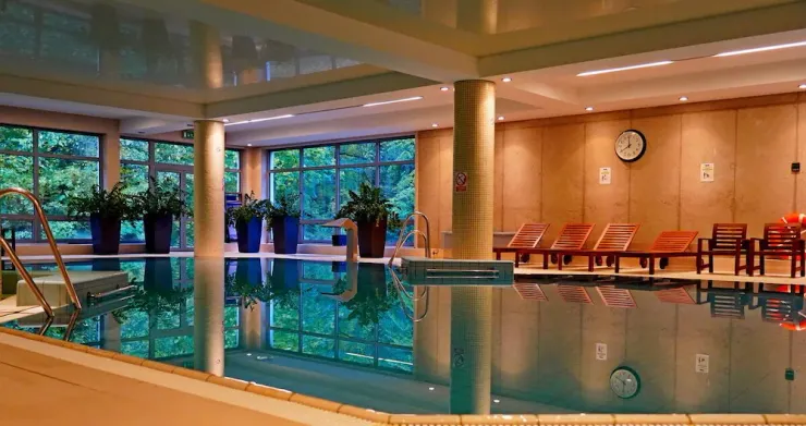 Luxury hotel with spa services, two indoor swimming pools, and a restaurant in Polanica-Zdrój, just minutes from local parks.