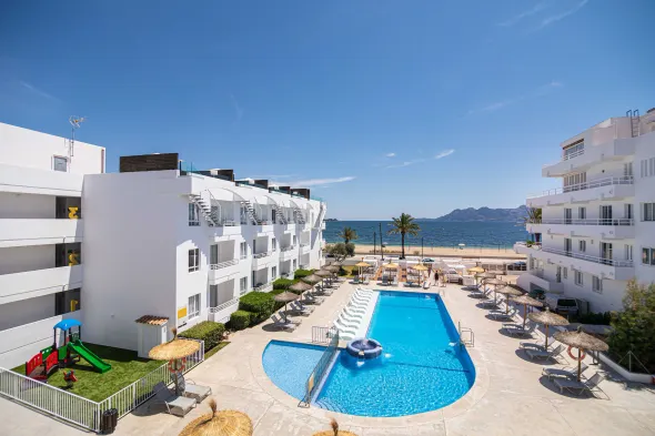Beach aparthotel with seasonal outdoor pool and family-friendly amenities near Playa del Port de Pollença.