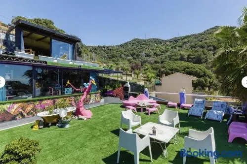 Enjoy a seasonal outdoor pool, on-site dining, and stunning views near the beach in Alella.