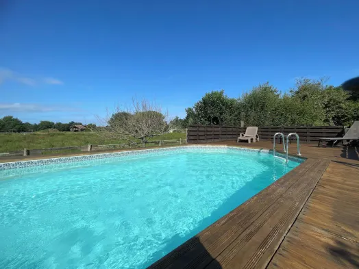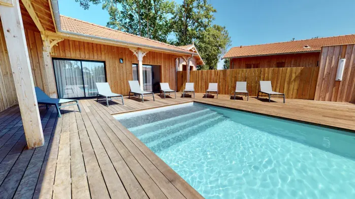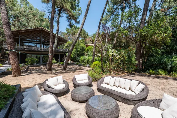 Luxury villa with private beach access, outdoor pool, and exceptional dining options in Lanton.