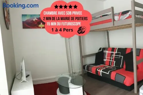 Chambres Poitiers Centre Ville - Salle de Bain, Réfrigérateur, TV et machine à café privatifs - Cuisine commune - Terrasse - Hôtel de ville à 200m
