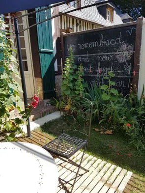 Charming hotel near Trouville Beach with a terrace, garden views, and family-friendly amenities.
