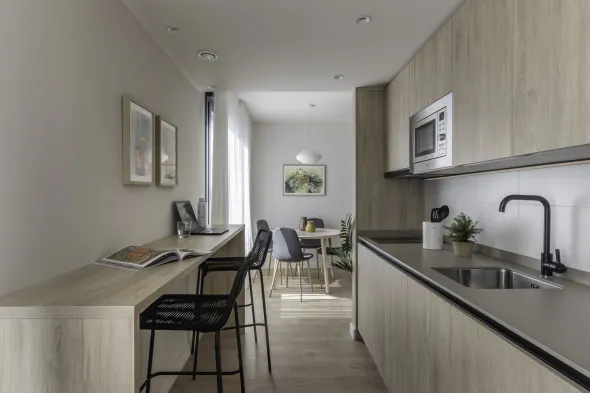 Modern apartment with air conditioning, kitchens, and table tennis in Pamplona's Ermitagaña neighborhood.