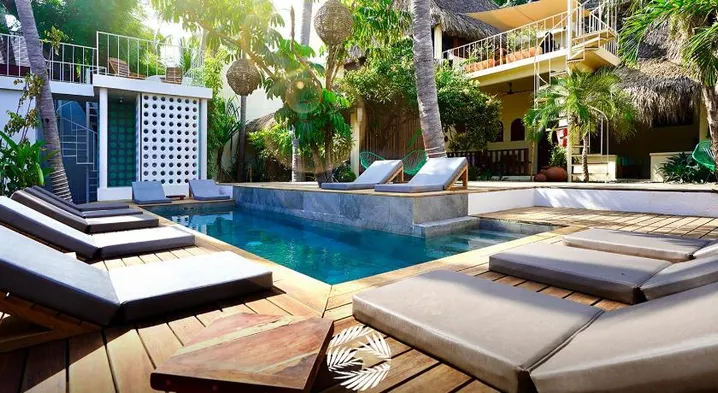 Adults-only hotel with outdoor pool and private beach, steps from Zipolite Beach and vibrant local dining options.