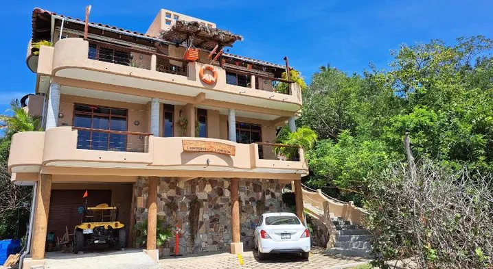 Beachfront hotel in Mazunte with private beach access, restaurant, and outdoor terrace for relaxation.