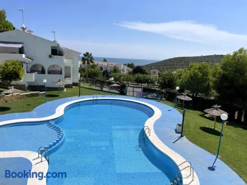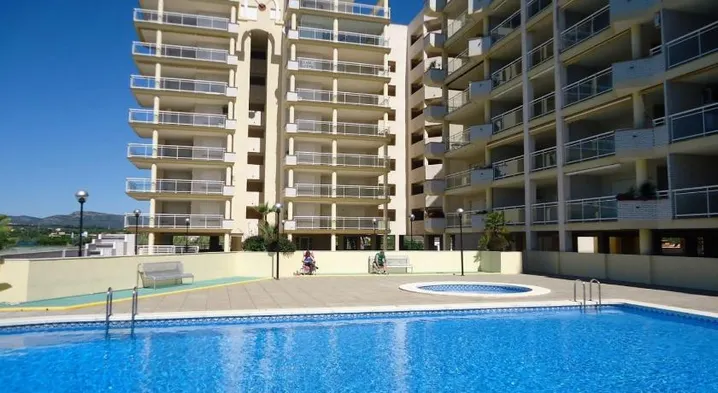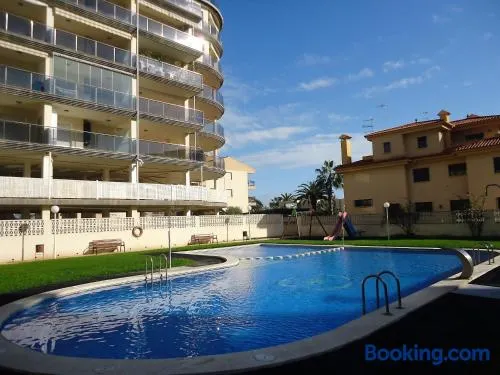 Apartment with swimming pool, private balcony, and free onsite parking near Platja la Caracola in Benicarlo.
