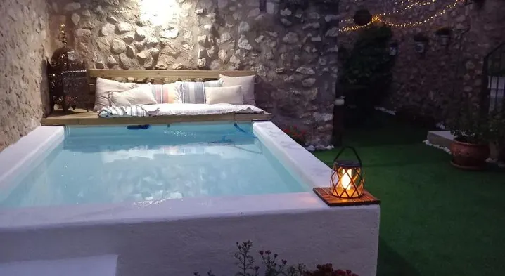 Experience luxury with 7 hot tubs, a sauna, and stunning mountain views in La Vall de Laguar.