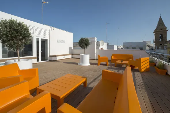 Aparthotel with rooftop terrace, air-conditioned rooms, and kitchens in the heart of Old Town Cádiz.