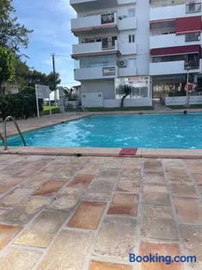 Mediterranean aparthotel with outdoor pool, restaurant, and bicycle rentals near Villajoyosa Central Beach.