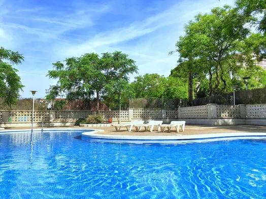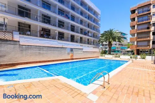 Aparthotel with outdoor pool and private balcony, centrally located near Llevant Beach in Salou.