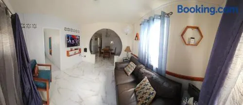 Cozy bungalow near Silver Sands beach with garden, fitness facilities, and access to water sports activities.