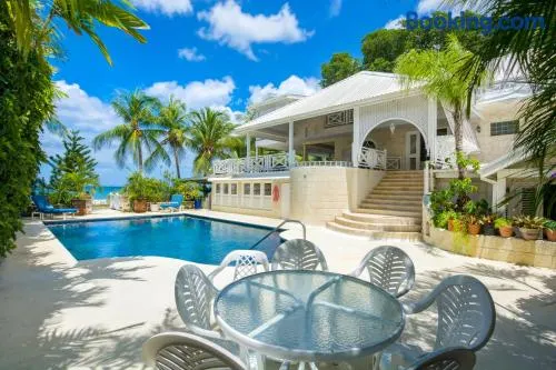 Luxury apartment with swimming pool, private beach access, and seasonal outdoor pool in Oistins, Barbados.