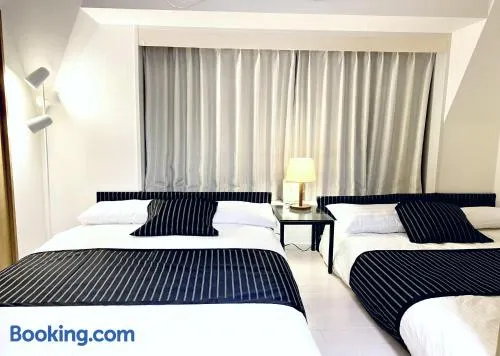 Centrally located hotel in Tokyo with hot tub, live music, and communal living room for a comfortable stay.