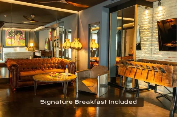 Luxury adults-only hotel with a rooftop terrace, hot tub, and steps from the Royal Alcázar of Seville.