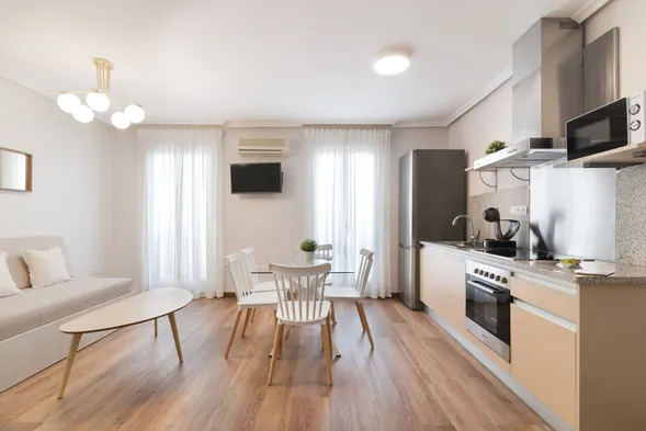 Centrally located apartment in Madrid with air conditioning, kitchens, and express check-in/check-out services.
