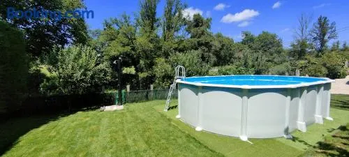 Relax in a large green area with a swimming pool and enjoy group activities at this cozy hostel in Lugo.