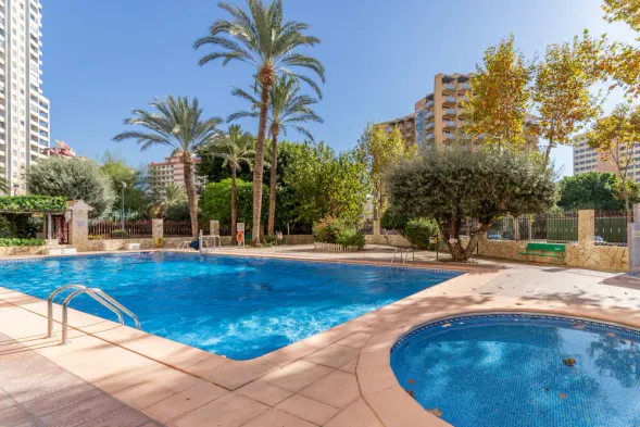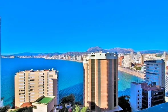 Modern apartment in Benidorm with sea and mountain views, communal swimming pool, and close to the beach.