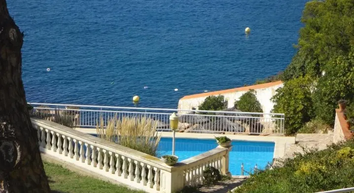 Relax by the outdoor pool at this Mediterranean hotel near the beach, featuring a restaurant and wellness services.