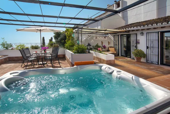 Beautiful village house in the heart of Mijas Pueblo with magnificent sea views.