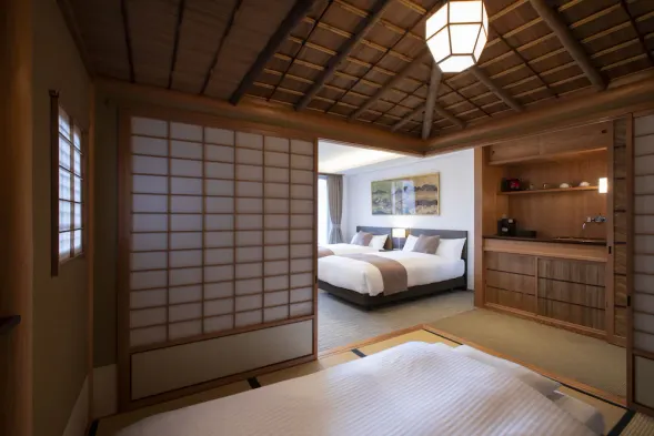 Luxury hotel in Kyoto with spa services, bicycle rentals, and individually decorated rooms featuring heated floors.