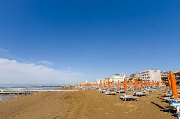 Hotel with outdoor pool and restaurant, featuring free parking and a private beach in Lido di Jesolo.