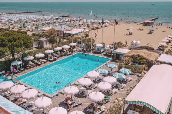 Hotel with private beach access, restaurant, and concierge services in Lido di Jesolo. Enjoy a relaxing stay with excellent amenities.