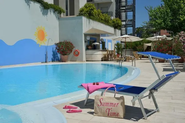 Luxury hotel with a swimming pool, spa services, and complimentary breakfast in Fiumicino, Italy.