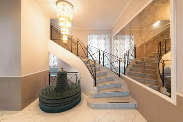 Experience luxury at this Bologna hotel with a spa, hot tub, steam room, and on-site restaurant for a relaxing getaway.