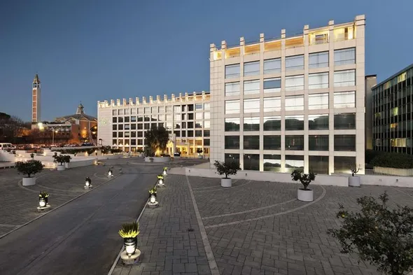 Modern hotel in Rome's business district with spacious rooms, superb restaurant, and a convention center for events.