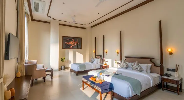 Hotels with outdoor pools near Assi Ghat often provide a range of amenities to enhance your stay. Typically, these hotels offer spacious pool areas that might include sun loungers, umbrellas, and sometimes even poolside bars or cafes. You can enjoy the scenic views of Varanasi while relaxing by the pool. Additionally, these hotels often focus on wellness, providing options such as spa treatments, yoga sessions, and fitness activities that allow you to unwind and rejuvenate during your visit.