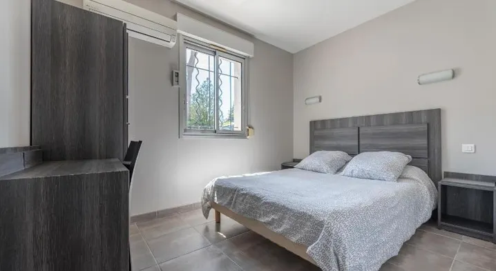 Comfortable hotel in Marseille with free parking and air-conditioned rooms featuring flat-screen TVs and complimentary Wi-Fi.