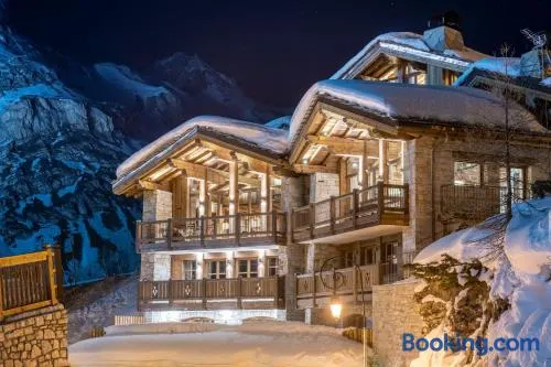 Ski-in/ski-out hotel with spa services, sauna, and a restaurant near Val-d'Isere Ski Resort.