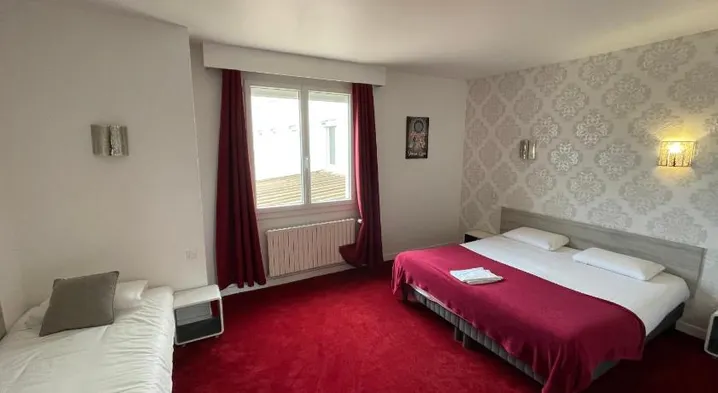 Comfortable hotel in Aurillac with free parking, a coffee shop, and convenient amenities for business travelers.