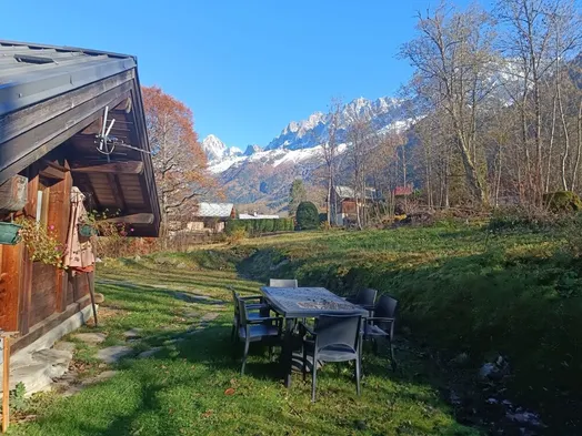 Chamonix Valley chalet in quiet location with private sunny garden and views