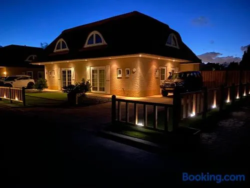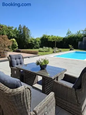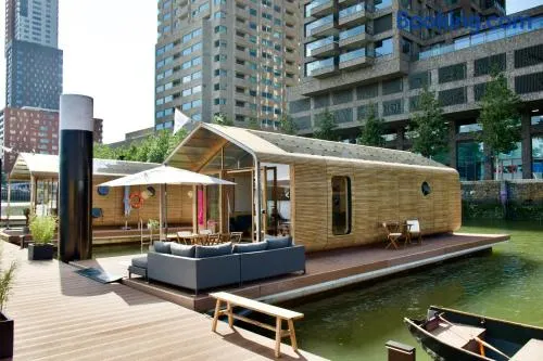 Experience a luxurious holiday home in Rotterdam with a swimming pool, sauna, and seasonal outdoor pool.