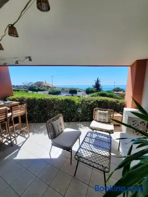 Cosy T2 refait à neuf climatisé, vue mer avec terrasse et jardin, Wifi piscine tennis et parking