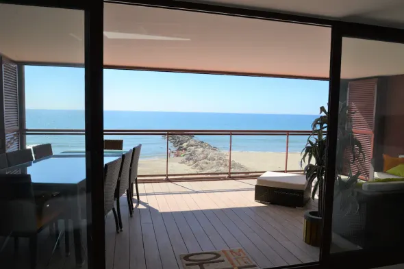 On the beach, facing the sea, 75m2 5* luxury apartment with 25 m2 terrace!