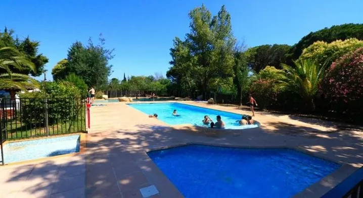 Family-oriented mobile home with barbeque, heated pool & terrace