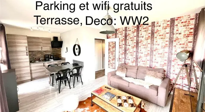 Apartment in Caen with a kitchen, terrace, and free parking, perfect for families or a relaxing getaway.