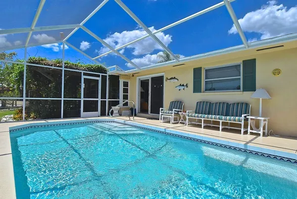 Luxury holiday home with a swimming pool, garden, and outdoor furniture in Sarasota, just minutes from Siesta Key.