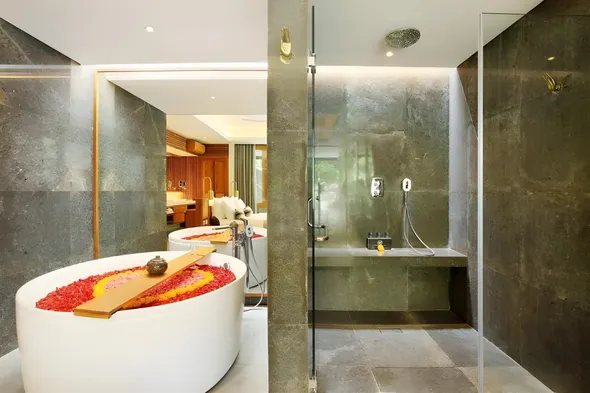 Guests at 5-star hotels in Ubud can expect a range of luxurious amenities designed for comfort and relaxation. Common features include spacious and elegantly furnished rooms, often with stunning views of nature. Many hotels offer private pools and wellness facilities, including yoga studios and fitness centers. Dining options typically include high-quality restaurants serving both local and international cuisine, alongside bars that offer a selection of fine wines and cocktails. Additional services may encompass personalized concierge assistance, airport transfers, and guided tours to make guests' stays memorable.